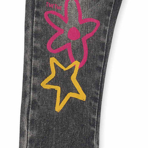 Jeanshose aus der Kinderbekleidungslinie Tuc Tuc, mit elastischem und verstellbarem Bundumfang. Auf der Vorderseite fluoreszierende Motive.