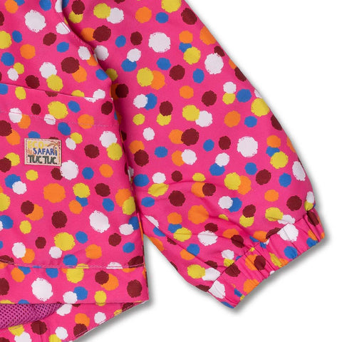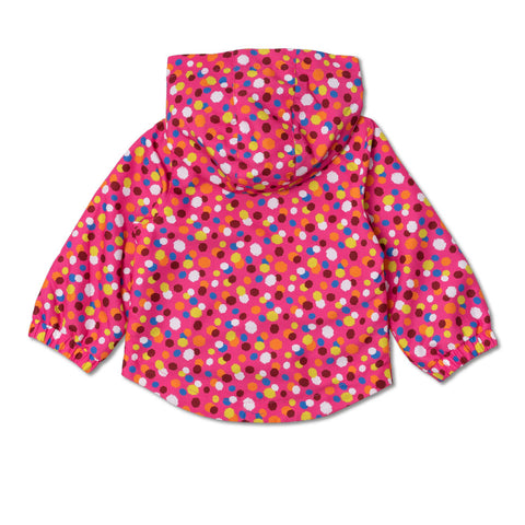 Windjacke aus der Tuc Tuc Kinderbekleidungslinie, mit buntem Tupfenmuster auf fuchsiafarbenem Hin...