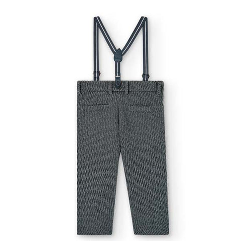 Weiche Hose aus der Boboli Kinderbekleidungslinie, mit Gummizug am Bund und passenden Hosenträgern.