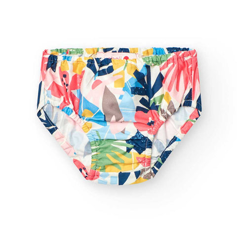 Abitino della Linea Abbigliamento Bambina Boboli, in cotone a fantasia multicolor con coulotte abbinata.