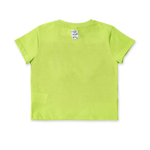 T-Shirt aus der Kinderbekleidungslinie Tuc Tuc, mit Augenaufdruck auf der Vorderseite und Stoffapplikationen, die mit Klettverschluss befestigt werden.