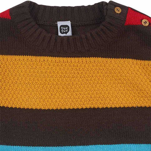 Pullover aus der Tuc Tuc Kinderbekleidungslinie mit mehrfarbigen Streifen und einer Reißverschlusstasche auf der Vorderseite.