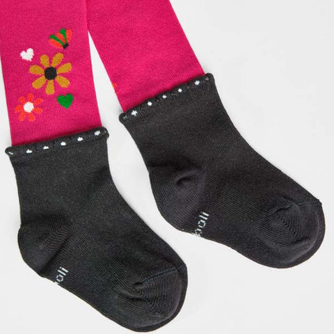 Strumpfhose aus der Boboli-Kinderkollektion mit Blumenmuster in einer Kontrastfarbe.