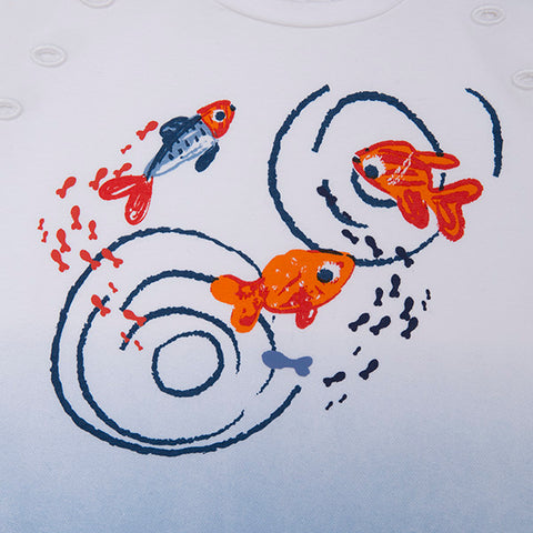 Bluse aus der Tuc Tuc Girl's Clothing Line mit perforierten Details an den Schulterträgern und buntem Goldfischdruck.