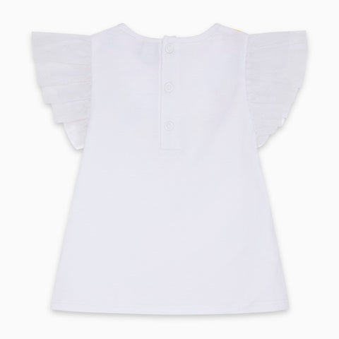 T-Shirt aus der Tuc Tuc Girl's Clothing Line mit Tüllärmeln und Designs farbig auf der Vorderseite mit floralen Motiven.