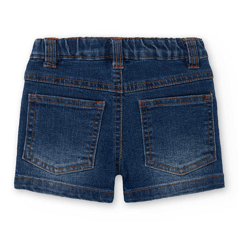 aus der Kinderbekleidungslinie Tuc Tuc, aus Jeans mit verstellbarem Bund und bunten Aufdrucken auf der Vorderseite.