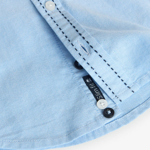 Langärmliges Hemd aus der Boboli Kids' Clothing Line, Oxford-Stoff, mit kontrastfarbigen Nähten.