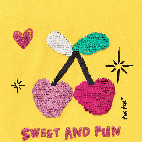 T-Shirt aus der Kinderbekleidungslinie Tuc Tuc, mit Lurex-Schriftzug und Paillettenapplikation auf der Vorderseite.