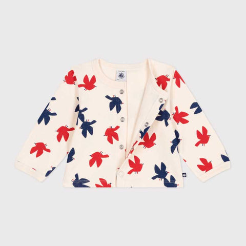 Cardigan della Linea Abbigliamento Bambina Petit Bateau in tubique, un materiale morbido e confortevole. Adorabile con la sua stampa di uccellini i cui colori ricordano l'identità di Petit Bateau. Il tubique è uno dei materiali iconici proposti da Petit Bateau: due maglie estremamente soffici unite insieme per una morbidezza unica. Apertura con bottoni automatici per tutta la lunghezza per indossare il capo più facilmente.