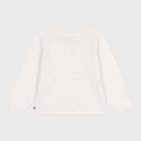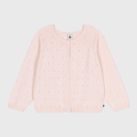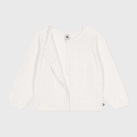 Cardigan della Linea Abbigliamento Bambina Petit Bateau in maglia 100% cotone lavorata a punto traforato. Apertura con bottoni sul davanti. Scollo arrotondato. Tessuto in 100% cotone, per maggiore comfort e morbidezza.
