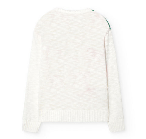 Pullover aus der Kinderkollektion von Boboli, mit regelmäßigem Schnitt und mehrfarbiger Verzierung auf der Vorderseite.
