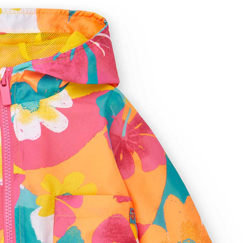 WINTERJACKE aus der Tuc Tuc Kinderbekleidungslinie, mit Kapuze und Reißverschluss. Taschen auf der Vorderseite und Netz auf der Innenseite. Schönes florales Muster in fluoreszierenden Farben.