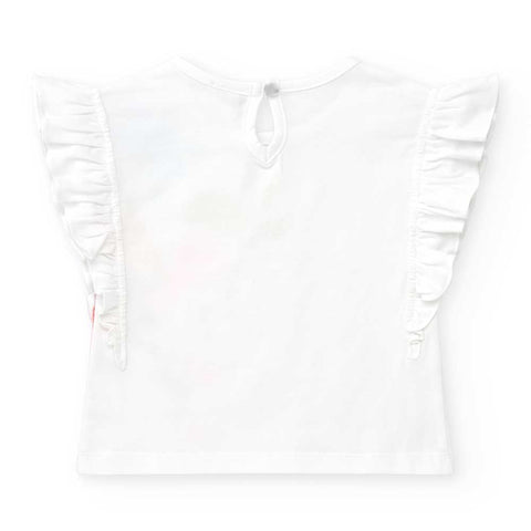T-Shirt aus der Bekleidungslinie Tuc Tuc Bambina, mit buntem Druck auf der Vorderseite und Applik...