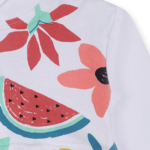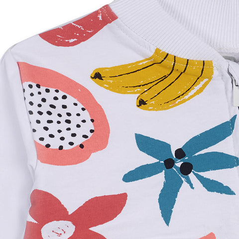 Fleecejacke aus der Tuc Tuc Children's Clothing Line mit Reißverschluss, buntes Fruchtmuster.