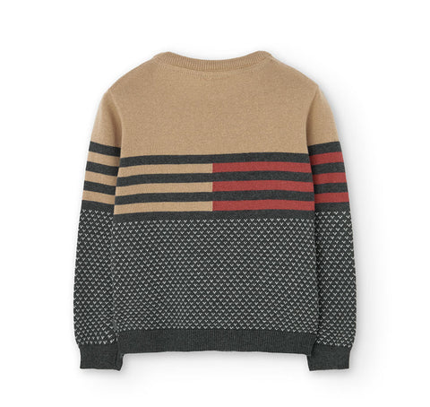 Maglione della Linea Abbigliamento Bambino Boboli,con collo rotondo e fantasia geometrica in colori neutri.