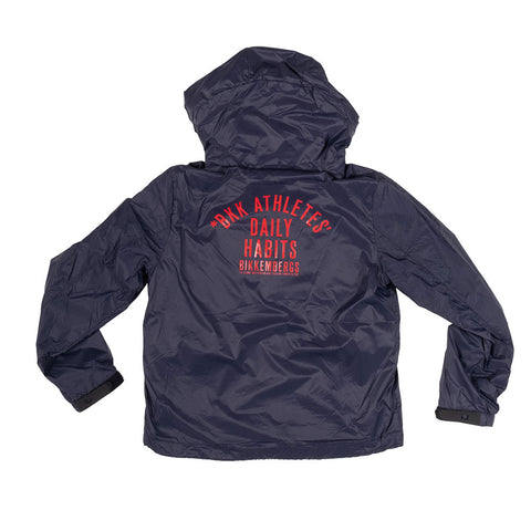 Jacket from the Bikkembergs children's line, windproof, with zip closure and hood. Inside mesh and print on the back in contrasting colour.