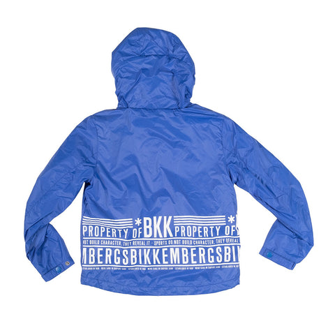 Jacket from the Bikkembergs children's line, windproof, with zip closure and hood. Lined inside and with contrasting color print on the back.