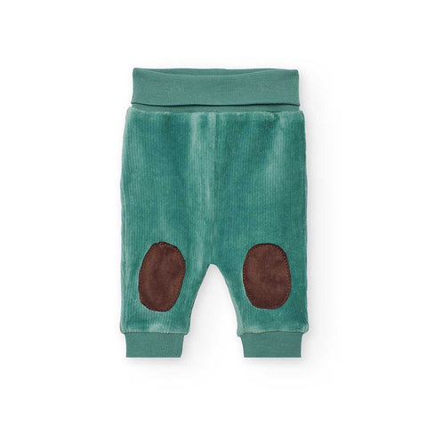 Two-piece set from the Boboli Children's Clothing Line, featuring corduroy pants and a buttoned sweater at the back with a small pocket on the front and an acorn-shaped applique.