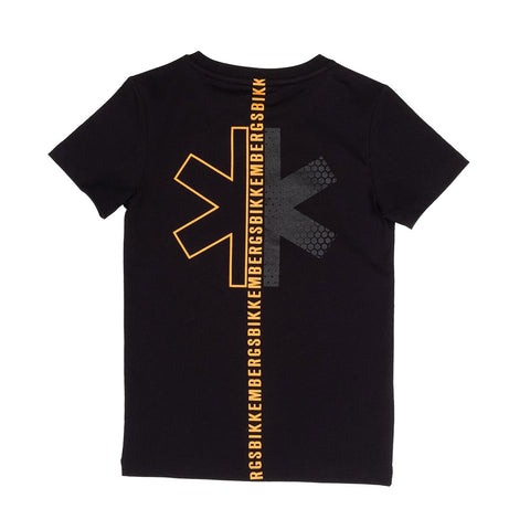 Short-sleeved T-shirt from the Bikkembergs Children's Clothing Line, with small logo on the front, and vertical print on the back, in contrasting colour.
