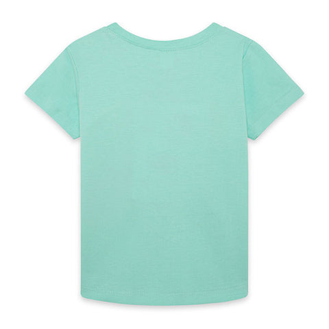 T-shirt from the Tuc Tuc children's clothing line, In The Jungle collection with print on the front and fabric applications. Press studs on the shoulder strap in contrasting color.