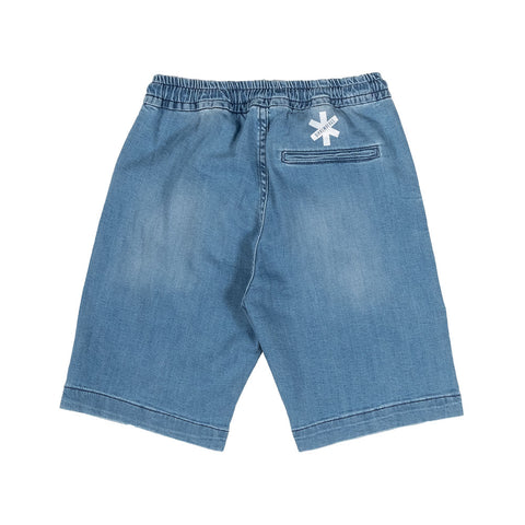 Denim shorts from the Bikkembergs children's clothing line, with pockets only on the front and drawstrings inside.