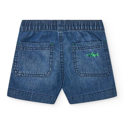 Tuc Tuc Children's Clothing Line Bermuda shorts, made of dark wash jeans with elastic and drawstrings at the waist.