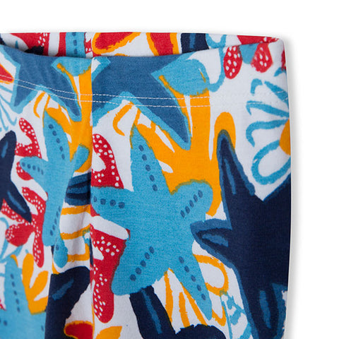 Pirate leggings from the Babina Tuc Tuc Clothing Line, Red Submarine collection, with all-over pattern of colored starfish.