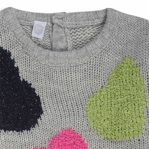 Knitted dress from the Tuc Tuc girls' clothing line, with neon colored hearts on the front with lamé inserts.
