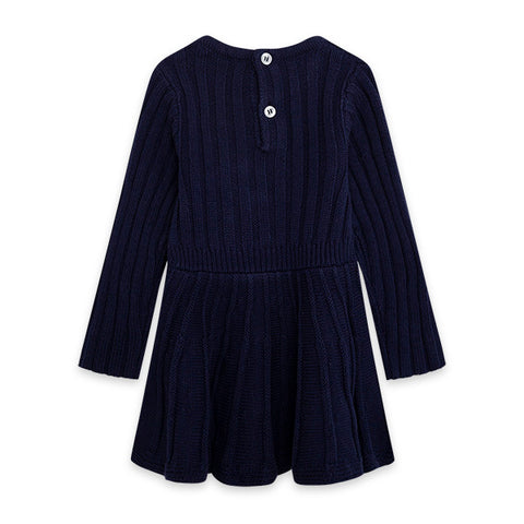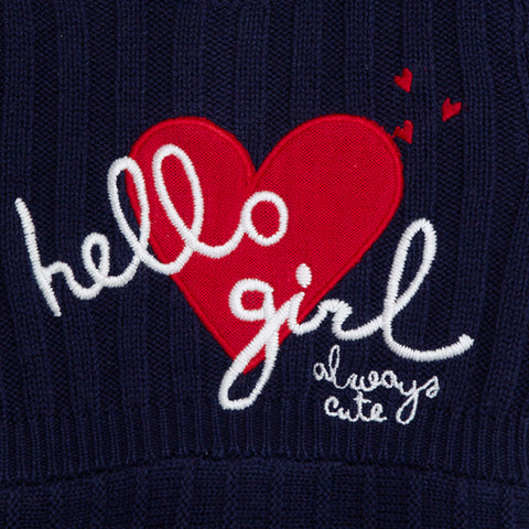 Tricot dress from the Tuc Tuc girl's clothing line, Hello London collection. with cut at the waist and heart embroidered appliqué.