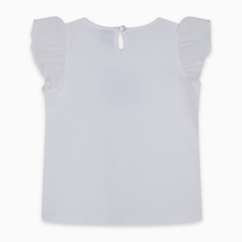 T-shirt from the Tuc Tuc Girl's Clothing Line with buttons on the back, voillant on the sleeves and on the front, sequined applications.