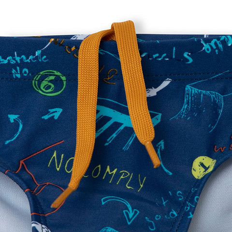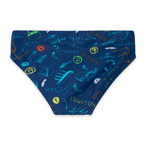 Swim briefs from the Tuc Tuc Childrenswear Line, Free Time collection, with drawstring at the waist and all-over fantasy with jellyfish in fluo colors.