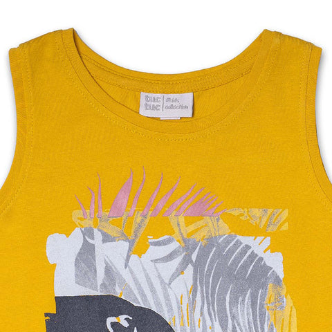 Canotta mare from the Tuc Tuc Children's Clothing Line, with a soft-toned print on the front featuring safari motifs.