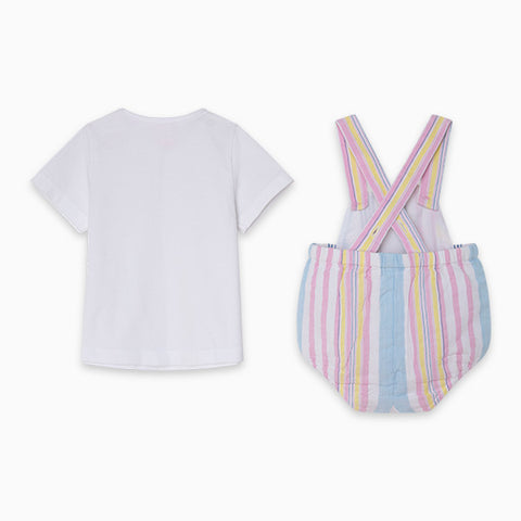 Dungarees from the Tuc Tuc Girl's Clothing Line consisting of dungarees with straps and striped pattern, and solid color t-shirt.