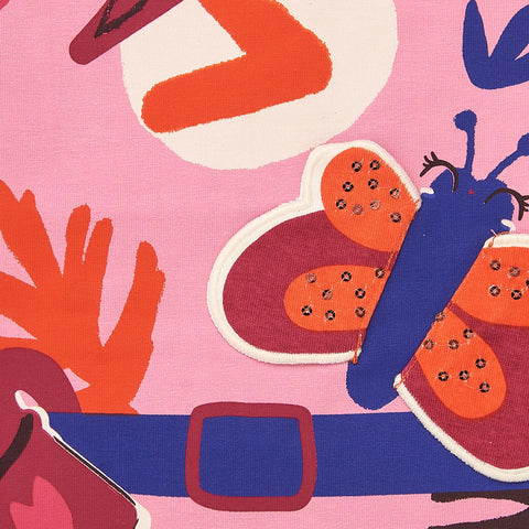 Long-sleeved t-shirt from the Tuc Tuc girls' clothing line, with multicolor print on the front and fabric application.