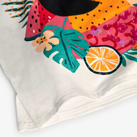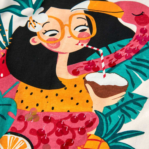 T-shirt from the Boboli Girls' Clothing Line, with a beautiful print on the front enhanced by multicolor sequins.