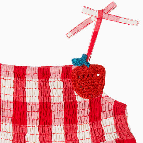 Jumpsuit from the tuc Tuc girl's clothing line with thin straps and smoke stitch at the top; pockets on the sides and elastic at the ankles.