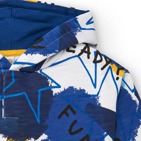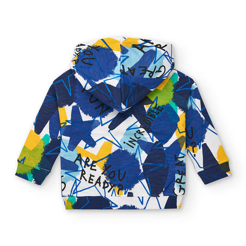 Hooded sweatshirt from the Tuc Tuc children's clothing line, with geometric patterns in bright colours.