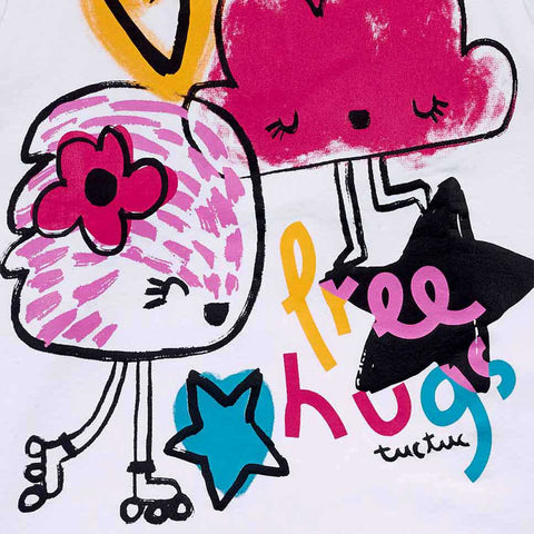 T-shirt from the Tuc Tuc girls' clothing line, with fluorescent designs on the front and snap buttons on the back.