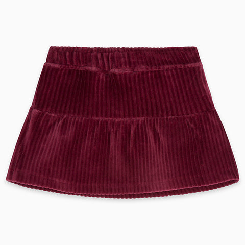 Tuc tuvc Girl's Clothing Line skirt in corduroy with elastic band at the waist and colored embroidery on the bottom.