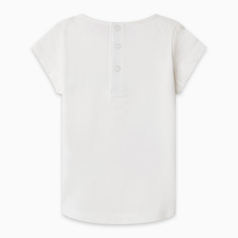 T-shirt from the tuc Tuc Girl's Clothing Line with press studs on the back and pretty colorful fruit print on the front.