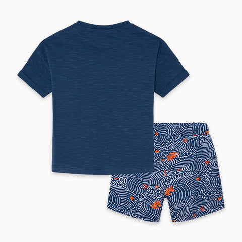 Two-piece suit from the Tuc Tuc Childrenswear Line consisting of shorts patterned and t-shirt with marine designs.