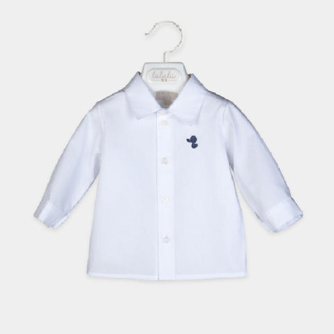 Two-piece suit from the Lalalù Children's Clothing line, consisting of a classic long-sleeved shirt, and wide trousers with soft fabric and turn-ups on the bottom.