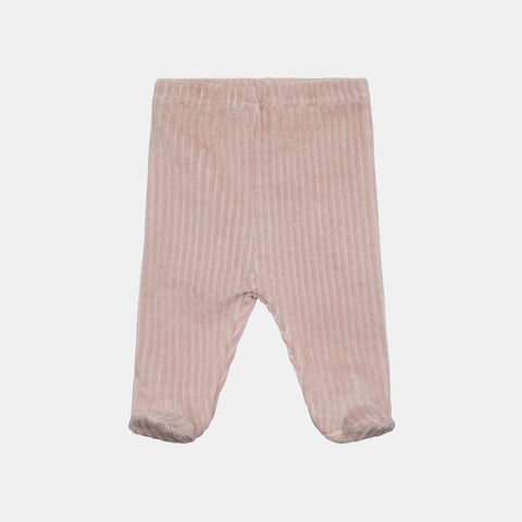Chenille outfit from the Lalalù Children's Clothing Line, with wide ribs, with fabric collar. and rose application on the front.
