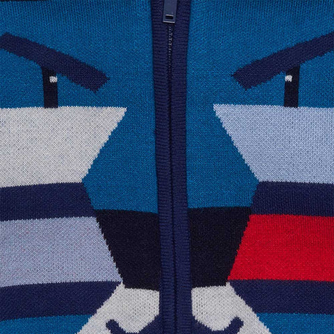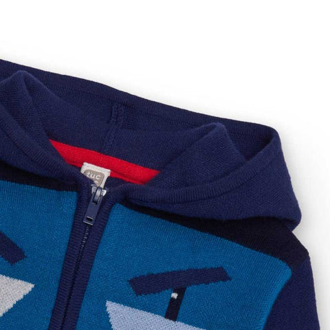 Cardigan of the Children's Clothing Line Tuc Tuc, with zip closure and hood. multicolor striped pattern.