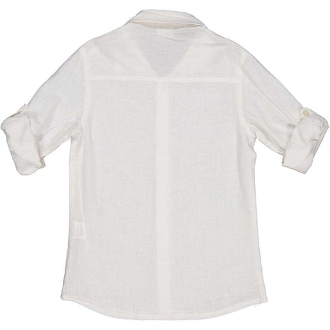 Linen blend shirt from the Trybeyond children's clothing line, with regular model and adjustable sleeves with buttonhole and button.