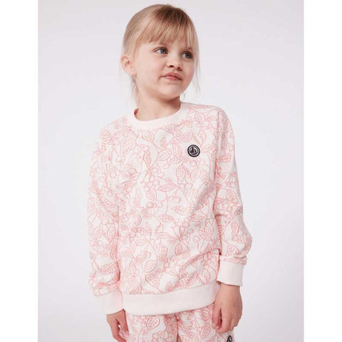 Maglia della Linea Abbigliamento Bambina Petit Bateau in tessuto felpato leggero con ciliegie sta...