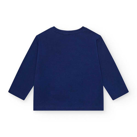 Long-sleeve T-shirt from the Tuc Tuc Girls' Clothing Line, with a colorful print on the front and fabric appliqués.