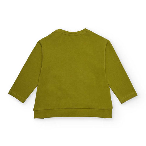 Felpina sottile della Linea Abbigliamento Bambina Tuc Tuc, con  stampa vivace su fondo verde.