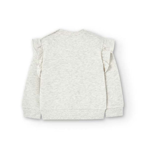 Felpa della Linea Abbigliamento Bambina Boboli, con ricami sul davanti e riccetti sulle spalline.