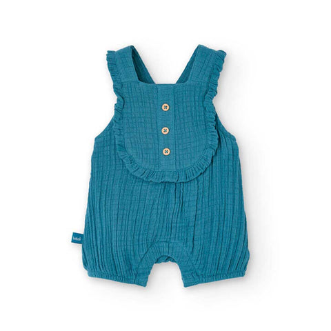 Salopette della Linea Abbigliamento Bambina Boboli, completa di t-shirt coordinata, con bottoncini finti sul davanti. Bretelle regolabili e bottoncini a pressione sul fondo.